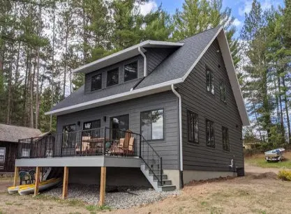 This beautiful 1250 sq. ft. home was designed by "Trout Creek Drafting and Design" and completed in 2021 by our firm, Monk Construction LLC. Located on the Wisconsin River, it has an open concept design, 2 bedroom cabin with a loft, 2 full bathrooms with a maintenance free exterior. If you have future building needs...contact us today to get on our schedule!